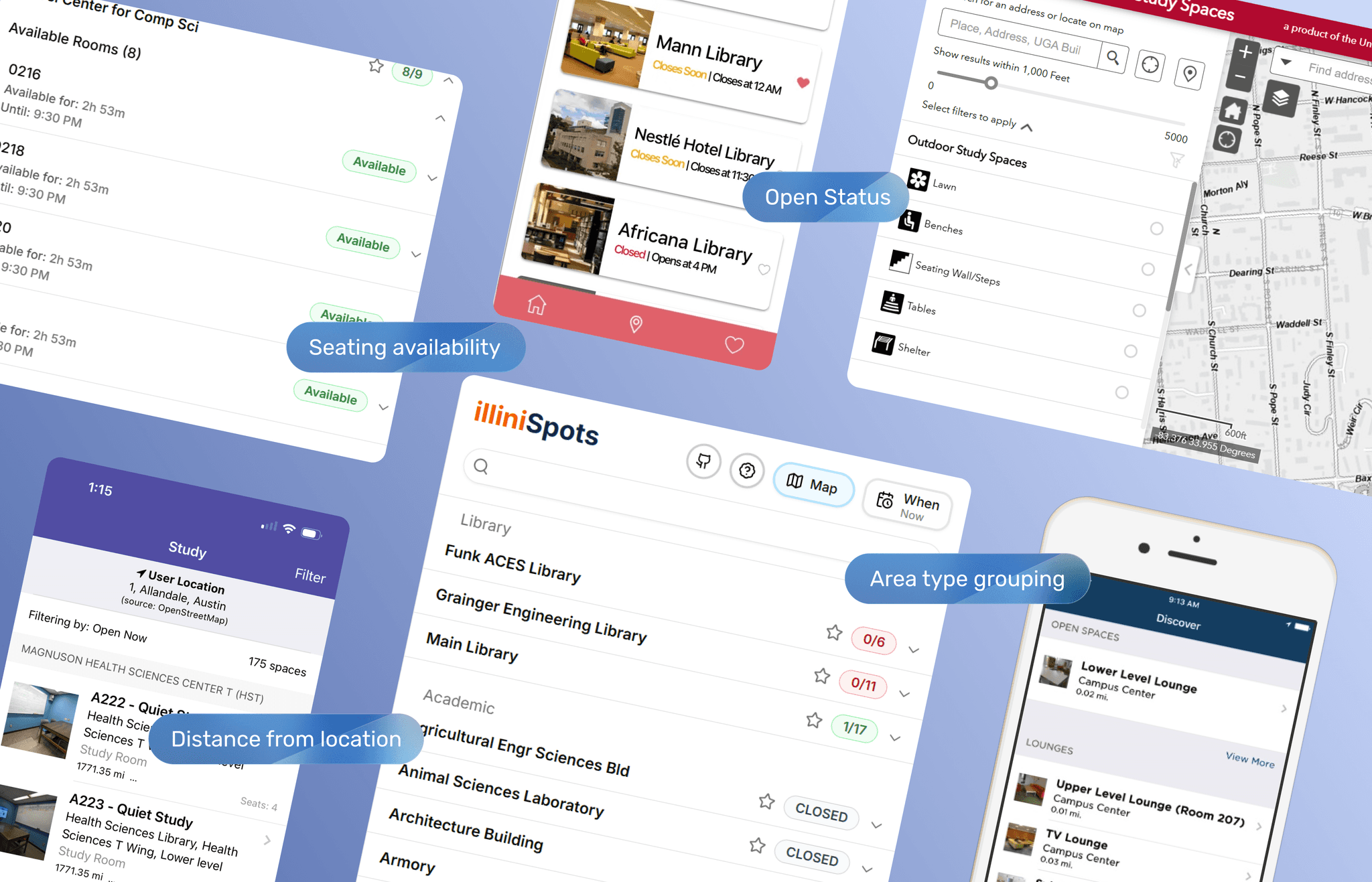 Enable quick study spot discovery based on personal preferences