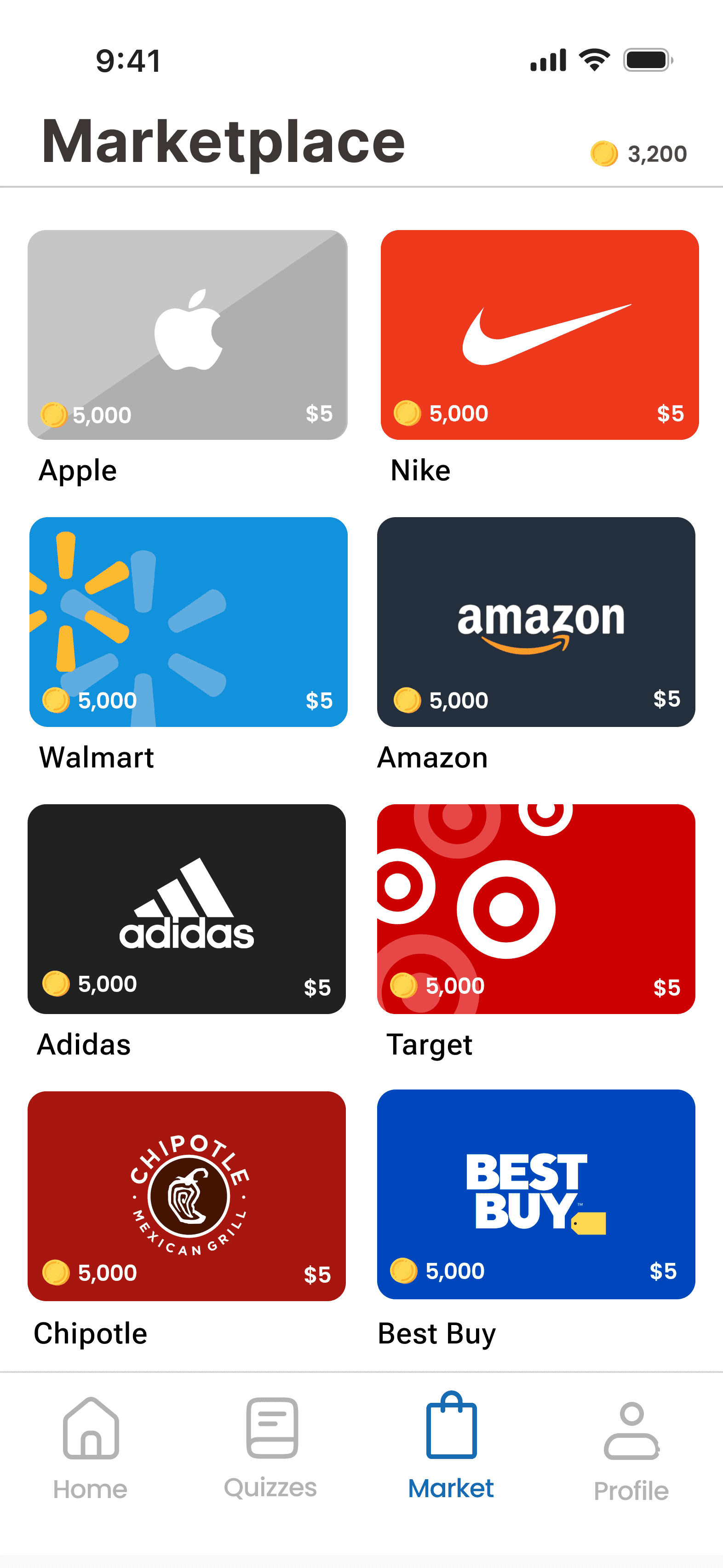 Redesigned the layout to showcase multiple gift card options at a glance to improve discoverability of rewards